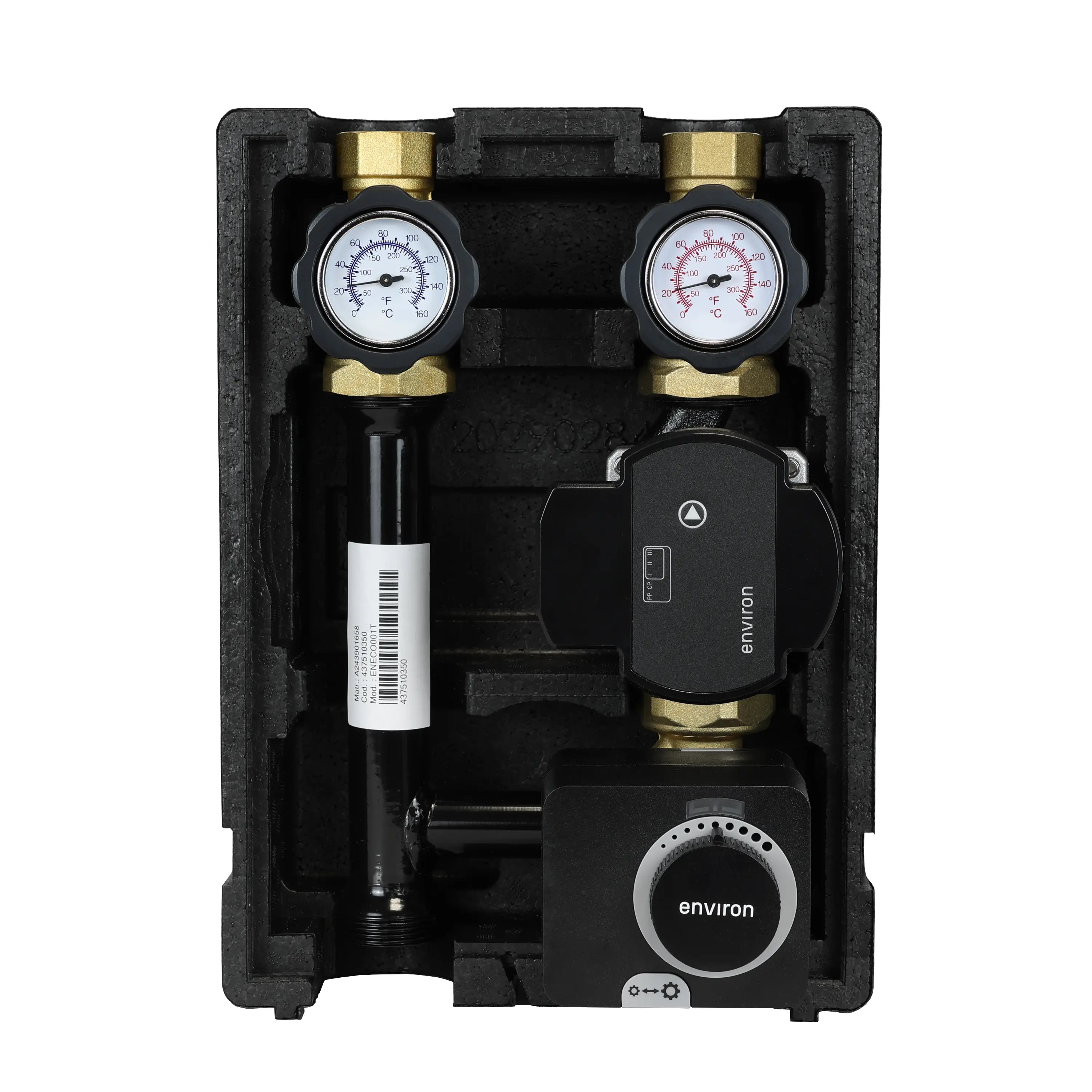 Die EcoMix ENT001 Heizkreispumpengruppe ist eine einbaufertige, professionelle Lösung für Heizkreise wie Fußbodenheizungen, Wandheizungen und Radiatoren. Ausgestattet mit einem robusten Drei-Wege-Mischer aus hochwertigem Messing und einem Environ END05 Stellmotor, bietet diese Pumpengruppe eine präzise Steuerung und hohe Effizienz. Sie können zwischen folgenden Hocheffizienzpumpen wählen: